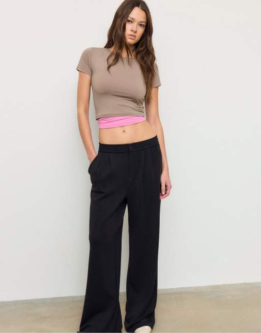 Stradivarius – Basic – T-Shirt aus Polyamid in Beige