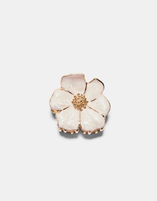 Stradivarius – Blumen-Haarklammer aus Metall in Ecru