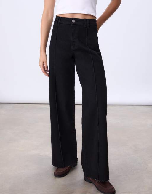 Stradivarius – D63 – Jeans in Schwarz mit Falten, verwaschenem Effekt und weitem Bein