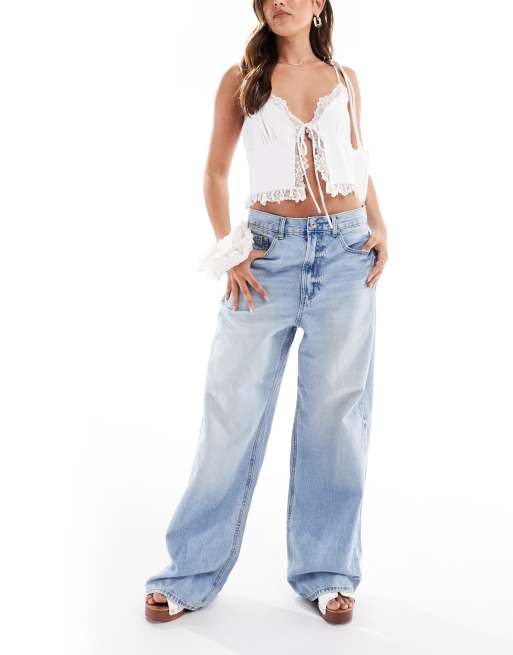 Stradivarius – D88 – Weite Jeans in dunkler Waschung mit niedrigem Bund