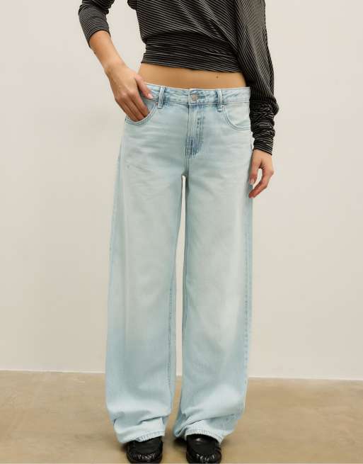 Stradivarius – D91 – Denim-Jeans in Mittelblau mit weitem Bein und niedrigem Bund