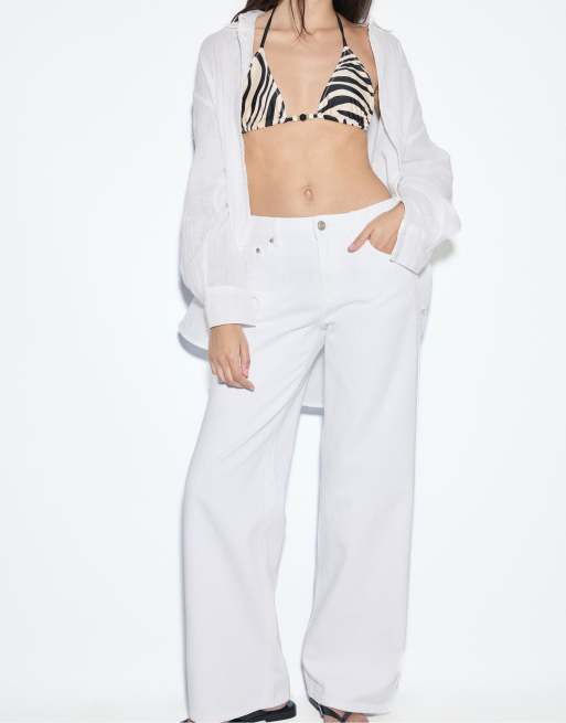 Stradivarius – D91 – Weite Jeans aus Twill in Weiß mit niedrigem Bund