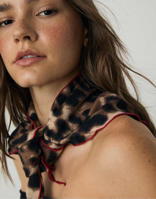 Stradivarius – Dreieckiger Schal in Braun mit Leopardenmuster