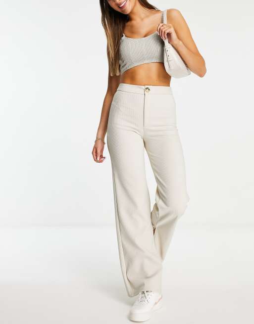 Stradivarius – Elegante Hose in Ecru mit Saumschlitz