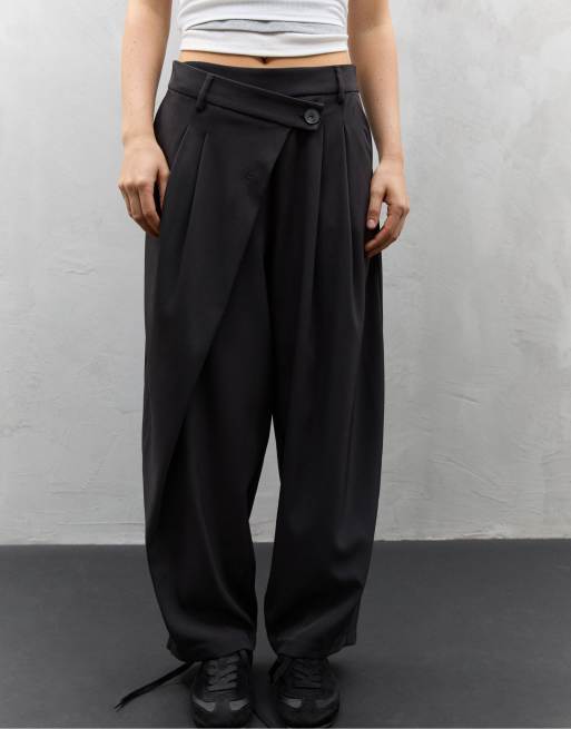 Stradivarius – Elegante Hose in Schwarz mit überkreuzter Taille