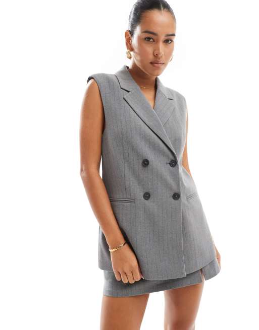 Stradivarius – Elegante Longline-Weste in Grau mit Nadelstreifen, Kombiteil