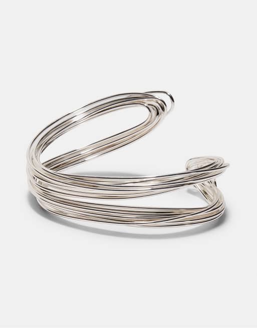Stradivarius – Festes Armband in Grau aus mehreren Metallreifen