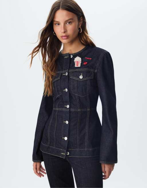 Stradivarius – Figurbetonte Jeansjacke in blauer Rinse-Waschung
