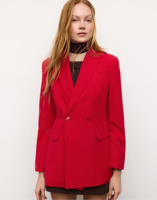 Stradivarius – Figurbetonter Blazer in Rot