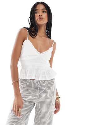 Stradivarius – Figurbetontes Oberteil in Ecru mit Rüschen