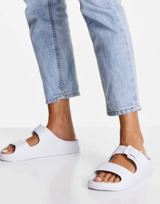 Stradivarius – Flache Sandale in Weiß mit doppeltem Riemen