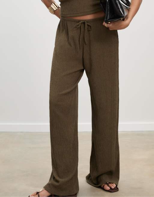 Stradivarius – Fließende Hose in Khaki mit Knittereffekt