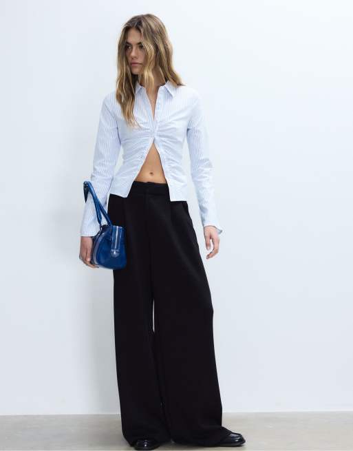 Stradivarius – Geraffte Hemdbluse aus Bengaline in Himmelblau