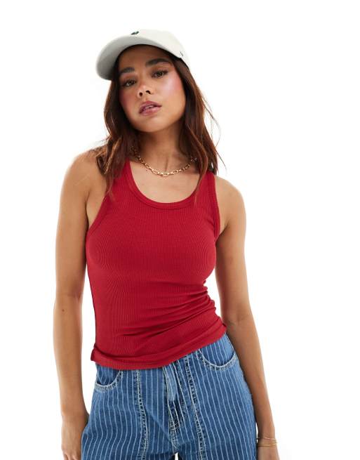Stradivarius– Geripptes Tanktop in Rot mit Ringerrücken