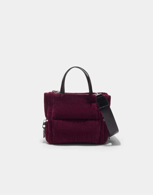 Stradivarius – Gesteppte Umhängetasche aus Cord in Burgunderrot