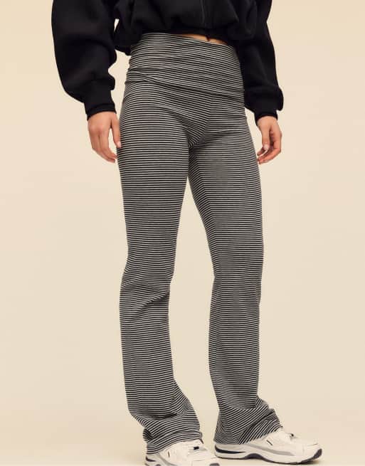 Stradivarius – Gestreifte Schlagleggings in Dunkelgrau
