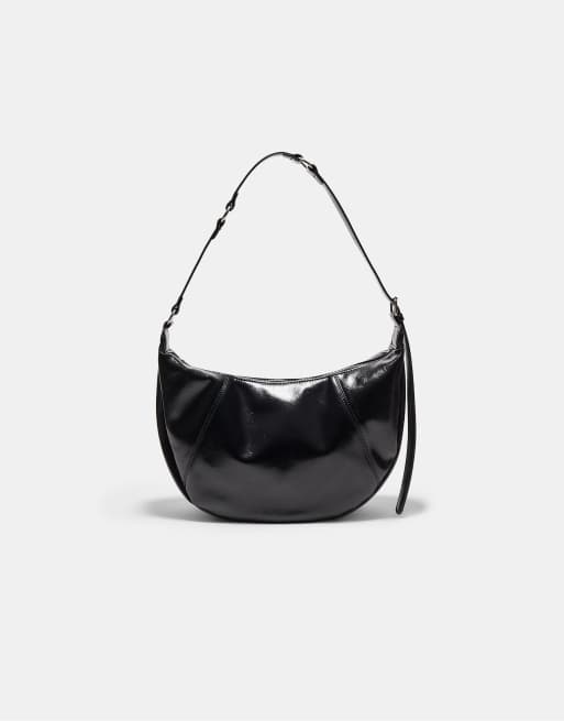 Stradivarius – Halbmondförmige Umhängetasche in Schwarz mit Details