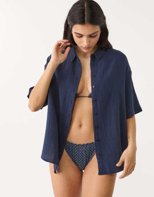 Stradivarius – Hemd aus Baumwolle in Marineblau