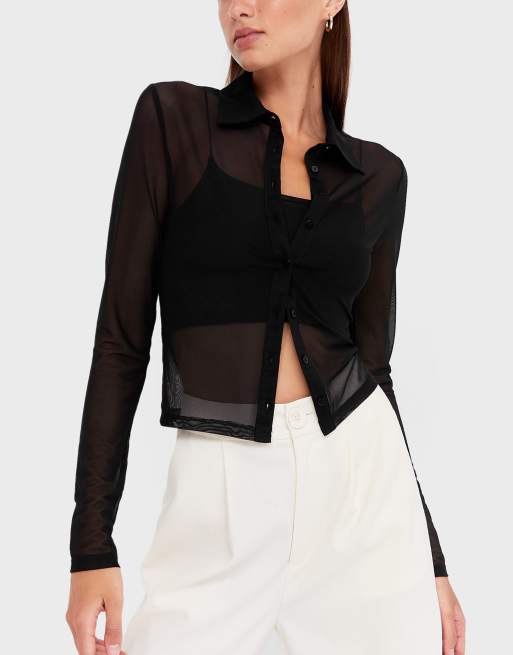 Stradivarius – Hemd aus Netzstoff in Schwarz