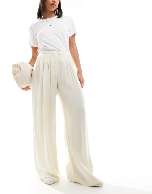 Stradivarius – Hose in Buttermilch mit fließenden Bundfalten vorn