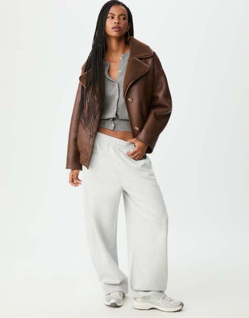 Stradivarius – Jacke aus Kunstleder in Braun mit regulärer Passform