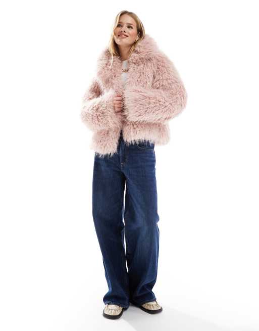 Stradivarius – Jacke aus Kunstpelz in Blassrosa