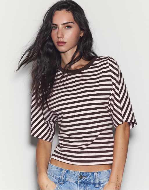 Stradivarius – Japanese – Kurzärmliges T-Shirt in Pastellrosa