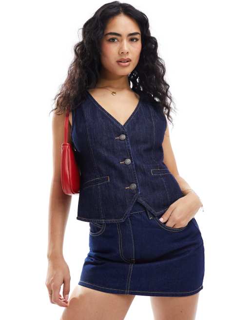 Stradivarius – Jeansweste in indigoblauer Waschung