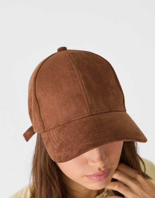Stradivarius – Kappe aus Wildlederimitat in Braun