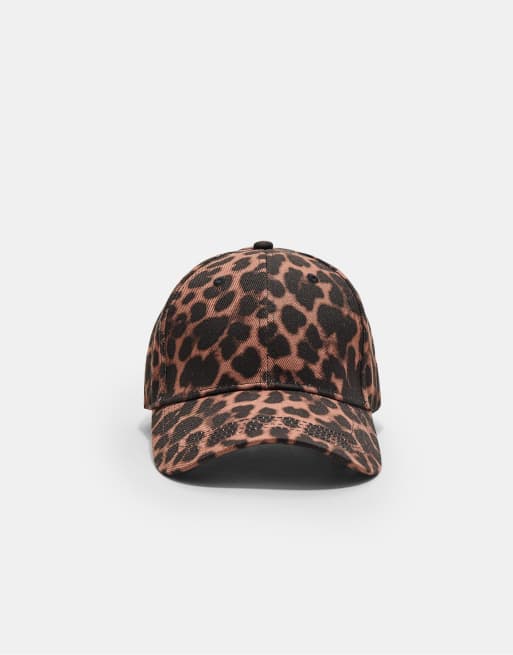 Stradivarius – Kappe in Braun mit Leopardenmuster