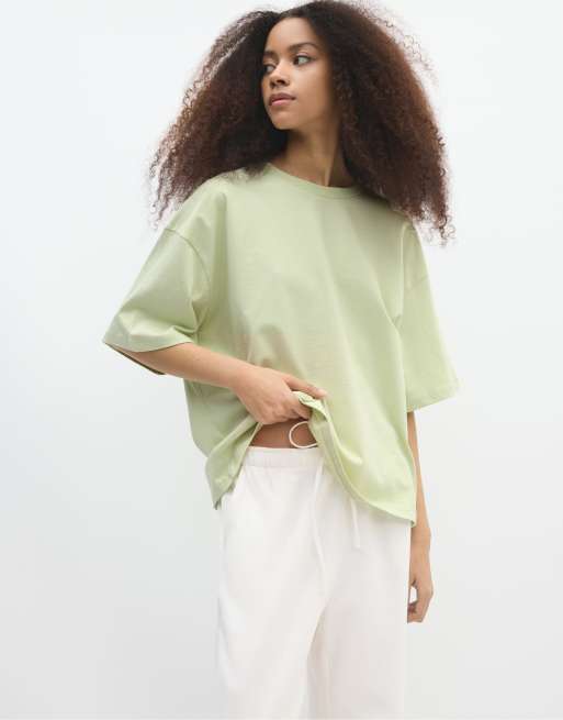 Stradivarius – Kastiges T-Shirt in Grün