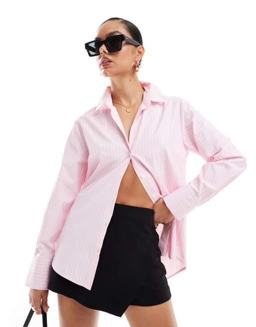 Stradivarius – Klassische Hemdbluse in gestreiftem Rosa