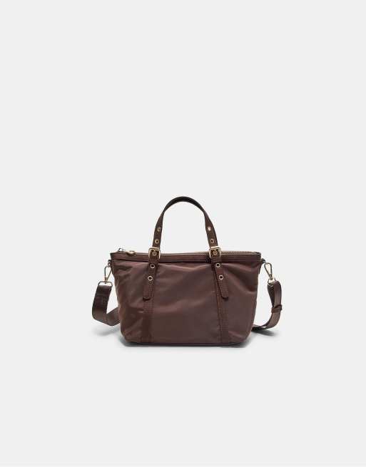 Stradivarius – Kleiner Shopper zum Umhängen in Braun mit Kontrastdetails