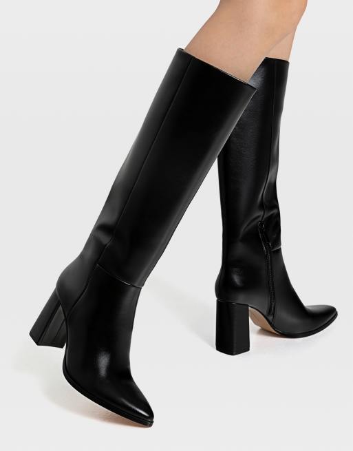 Stradivarius – Kniehohe Stiefel in Schwarz mit Absatz