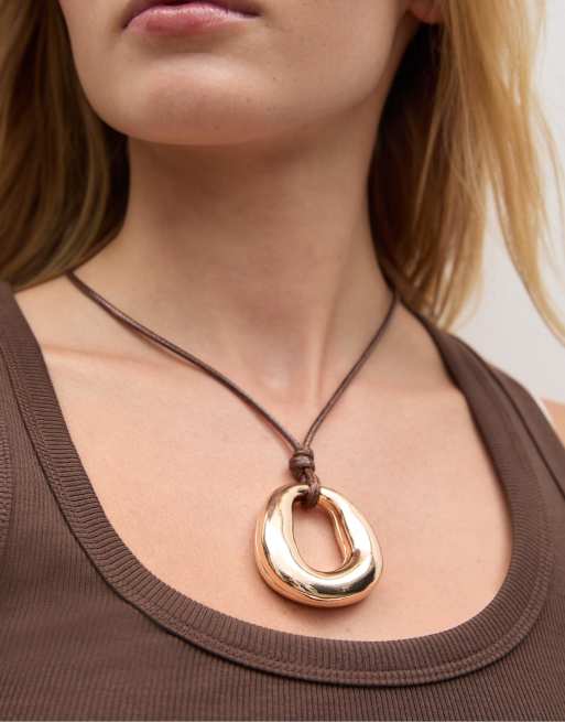 Stradivarius – Kordelhalskette mit goldfarbenem Anhänger