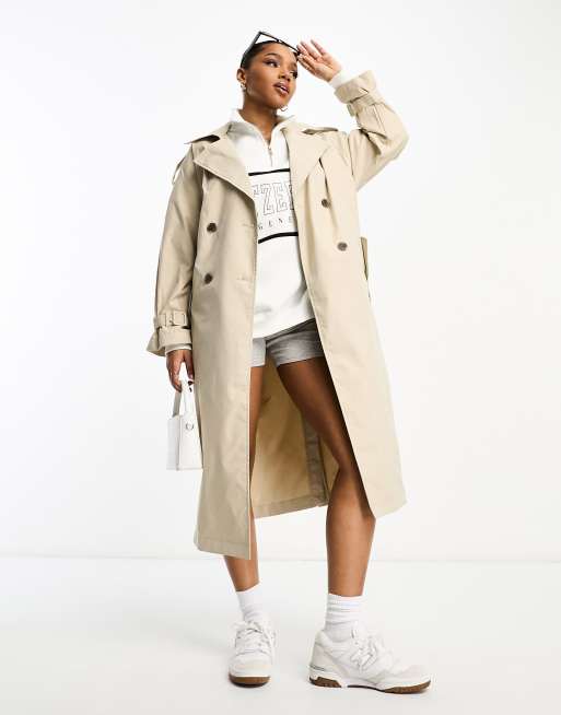 Stradivarius – Langer Oversize-Trenchcoat in Ecru