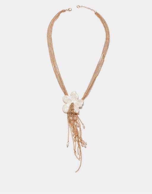 Stradivarius – Lasso-Halskette in Gold-Optik mit emailliertem Blumendesign