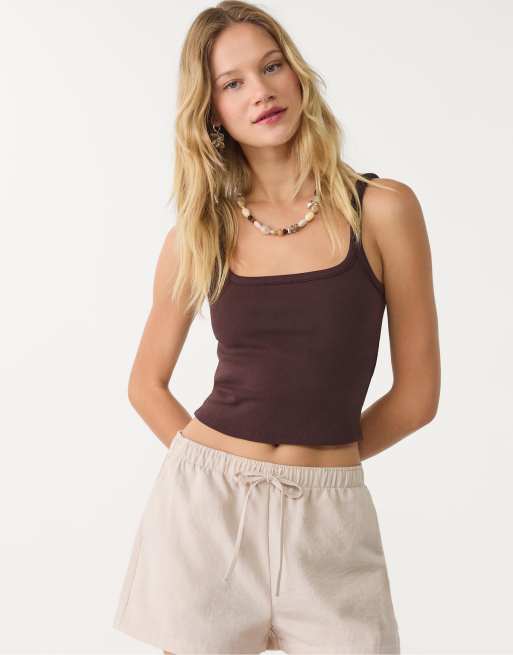Stradivarius – Lockere Shorts in Steinbeige mit elastischem Bund