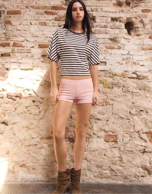Stradivarius – Mini-Paillettenshorts in Pastellrosa