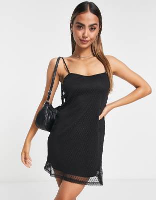 Stradivarius – Minikleid aus Mesh in Schwarz mit Dobby-Struktur