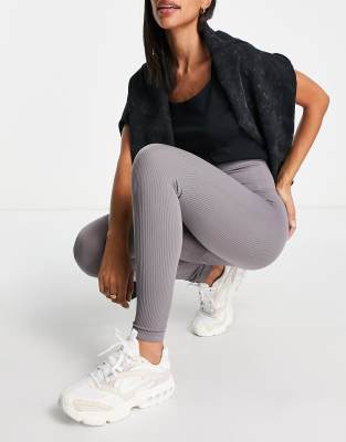 Stradivarius – Nahtlose, gerippte Leggings in Grau