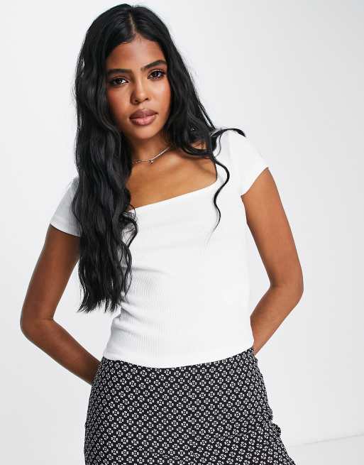 Stradivarius – Nahtloses Oberteil in Weiß mit eckigem Ausschnitt