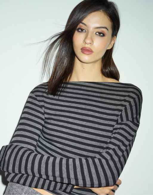 Stradivarius – Oberteil in Dunkelgrau mit asymmetrischem Ausschnitt