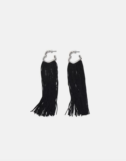 Stradivarius – Ohrringe in Schwarz mit langen Herzanhängern mit Quasten