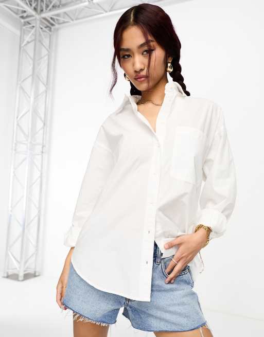 Stradivarius – Oversize-Hemd aus Baumwolle in Weiß