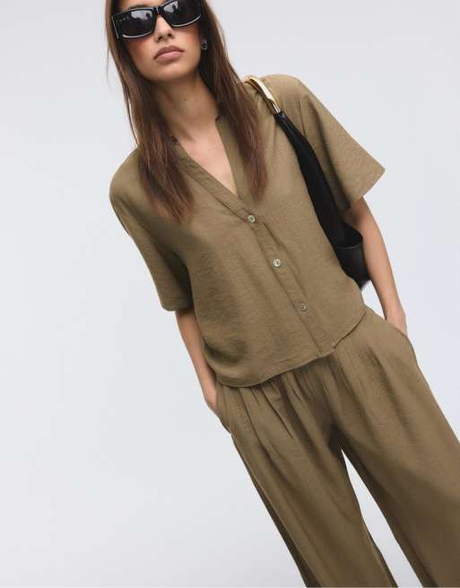 Stradivarius – Palazzo-Hose in Braun mit Abnähern