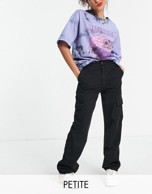 Stradivarius Petite – Cargohose in Schwarz mit geradem Bein