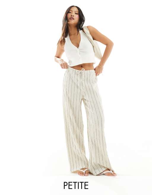 Stradivarius Petite – Gestreifte Schlupfhose mit Knitterstruktur