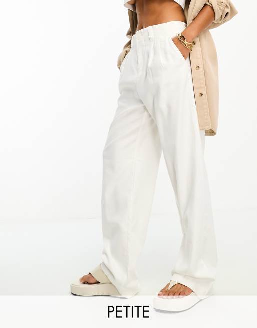Stradivarius Petite – Hose in Leinenoptik in Weiß mit weitem Bein