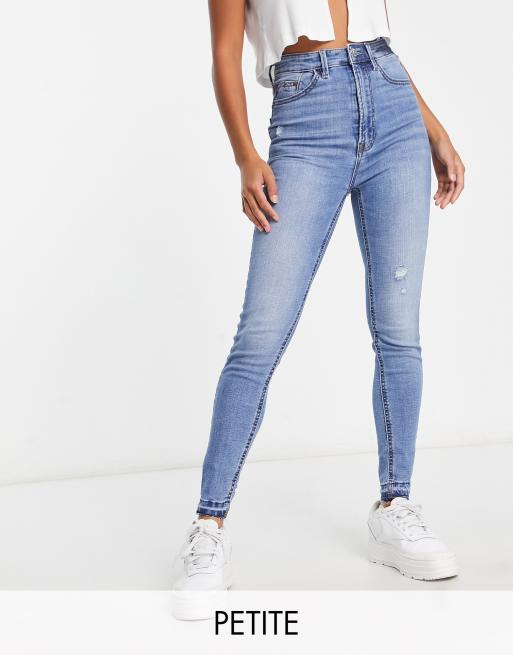 Stradivarius Petite – Jeans in Mittelblau mit engem Schnitt und superhohem Bund